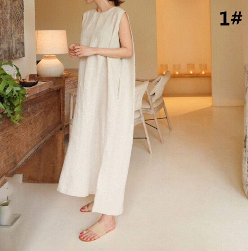 ワンピース ロング丈ワンピース レディース ノースリーブ ラウンドネック