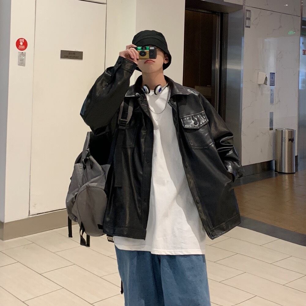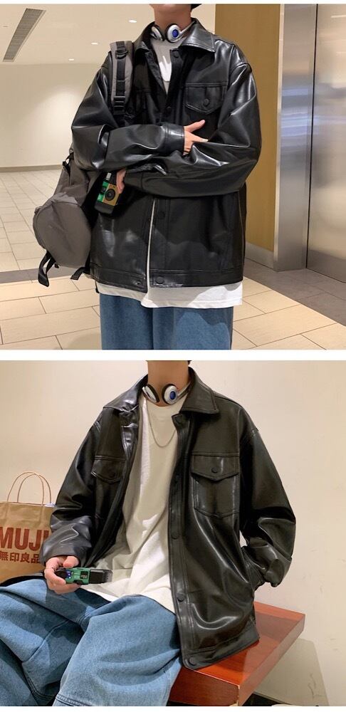 トップス アウター ジャケット フライトジャケット PU フェイクレザー ゆったり メンズ